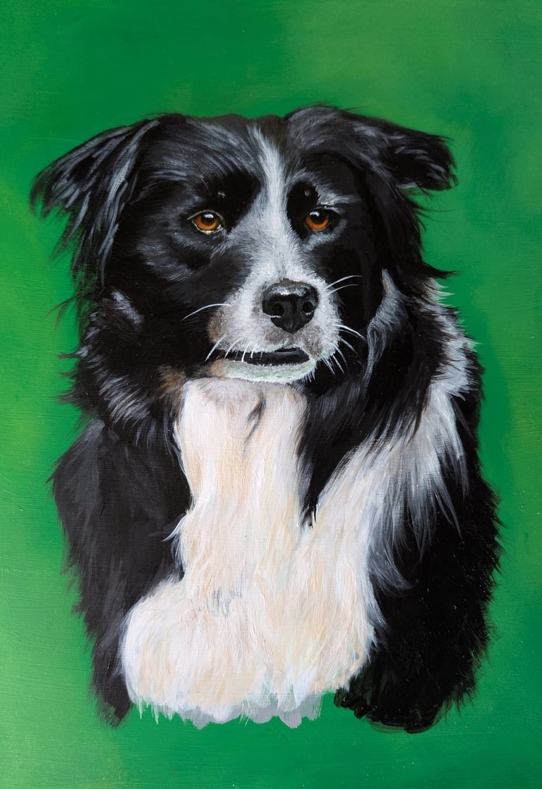 I work in acrylics because they allow me to bring out the vibrancy, detail, and personality that make each pet so special. Their fast drying time means I can build up rich layers and depth, while their durability ensures the colours stay fresh and full of life for years to come.